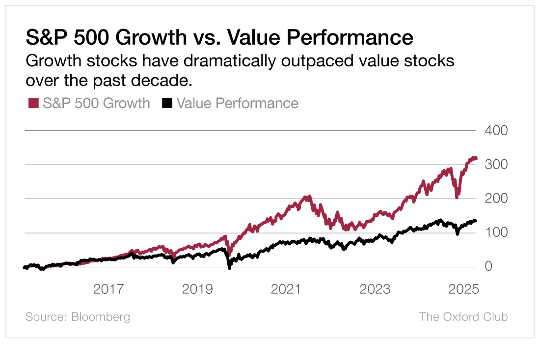 Over the last decade, the return of the S&P 500 Growth Index has more than doubled that of the S&P 500 Value Index.