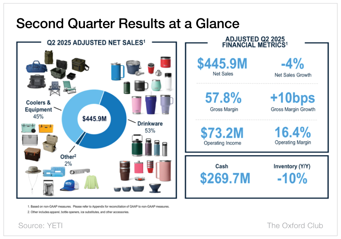 Action to Take: Buy Yeti Holdings (NYSE: YETI) at market. And use our customary 25% trailing stop to protect your principal and your profits.