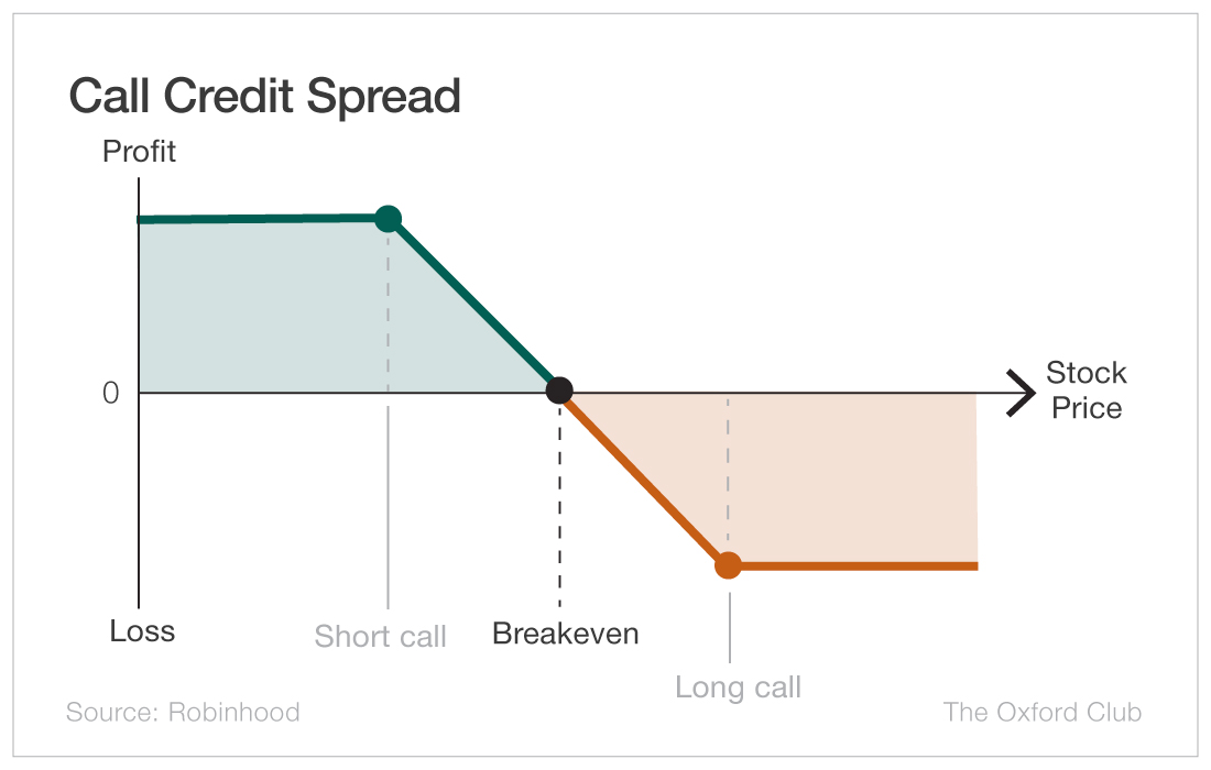 In that case, we will be setting up a bear call spread, also known as a call credit spread or vertical call spread.