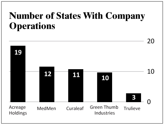 There’s also a new type of cannabis company taking center stage: the multistate operator (MSO). These are pot companies licensed to operate in a number of different states.