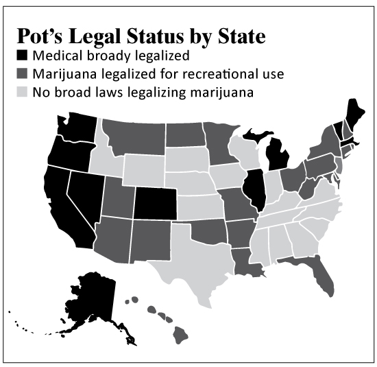 Today, 33 states and Washington, D.C., have legalized medical marijuana. Another 11 states plus Washington, D.C., have given the green light to adult-use cannabis. And 24 states plus Washington, D.C., have decriminalized possession of small amounts of pot.
