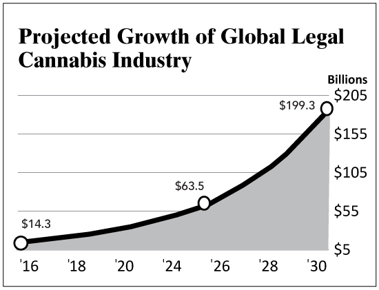 I told investors the global cannabis industry would reach $200 billion by 2030, increasing 1,300% from 2016 to 2030.